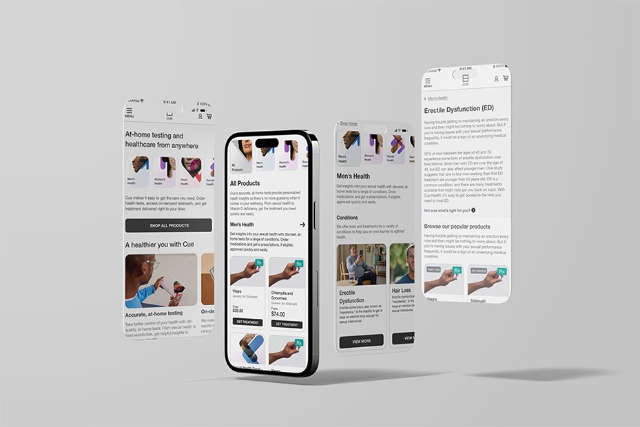At Cue Health, I led the redesign of the company’s consumer and professional healthcare platforms as the business evolved from an enterprise focused model to a direct to consumer experience. The work centered on simplifying how people manage their health at home, from diagnostic testing through consultation and treatment, while ensuring experiences remained trustworthy, accessible, and easy to understand.